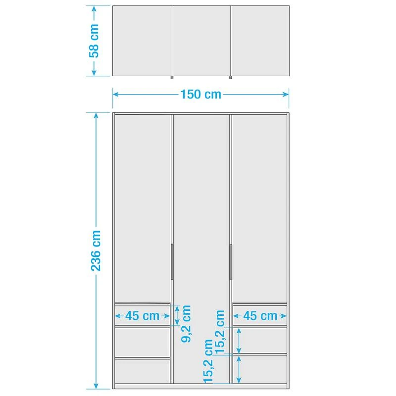 - Contenu de la livraison : Armoire avec 3 étagères et 2 tringles à vêtements, sans accessoires