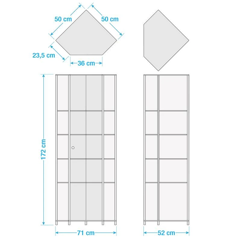 - Contenu de la livraison : vitrine d’angle sans décoration