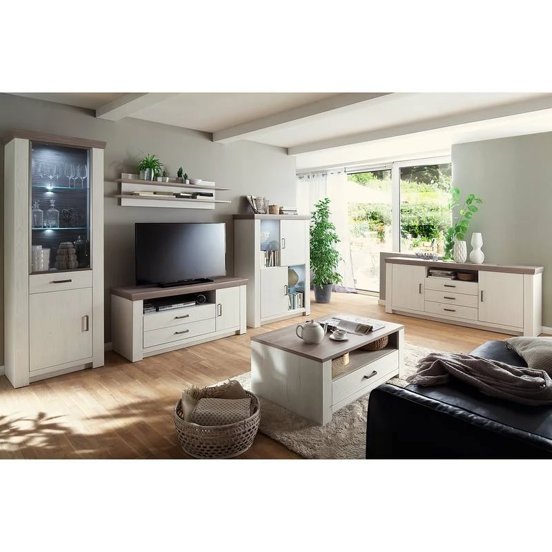 - Plateau supérieur et Panneau arrière des compartiments : imitation chêne Nelson